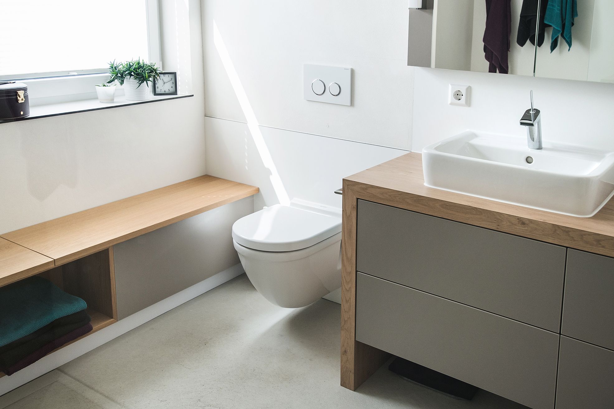 Garderobe, Einbaumöbel in Bad und WC, eine maßgeschreinerte Küche, Holzfußböden, Schlafzimmermöbel und vor kurzem kam ein neuer Esstisch samt Sitzbank dazu.